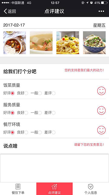 1、每天推送第二天的食譜/套餐,員工可以選擇是否就餐!