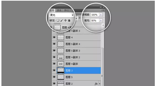 ★ 只需要明白三個關鍵詞:疊加、柔光和透明度(填充)。