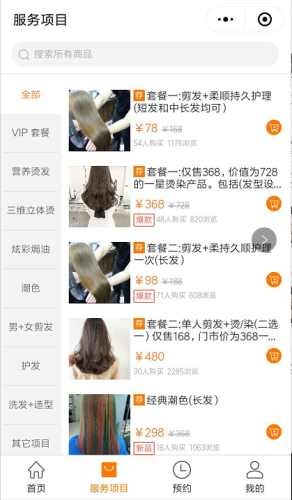 商家可以通過小程序展示店內的所有產品及信息。如:店內環境展示、產品詳情介紹、造型師詳情介紹等。消費者通過小程序即可了解店內所有信息,產品圖片、價格、耗時、銷量、優惠等,一目了然,方便又快捷。