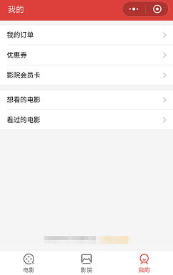 電影小程序主要分為電影,影院和我的三個板塊等。電影里主要有新舊影片信息,影客可在搜索框搜索自己的所想觀看的影片。影院主要是供影客就近選擇觀看影地,從而節省路上所花費的時間。我的里面主要有我的信息(影客的信息點)、我的訂單(里面有影客預約的訂單或者有影客購買的訂單)、優惠券(在購買電影票的時候有優惠,滿多少可以減去多少錢)、想看的電影(喜歡觀看的電影)、看過的電影(看過的影片的記錄,到時可以為影客篩選所喜歡觀看的電影)、點評(是為了了解所上映的影片效果怎么樣,觀看后的感想)等信息點。