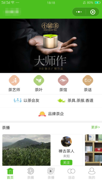 茶藝小程序的界面優雅、功能齊全。在小程序上,商家可以開設茶藝師、茶圈、茶館、茶話、茶文化等眾多版塊,還可以創建一個茶葉商城、茶葉大本營等。用戶通過茶藝小程序可以了解到自己想要了解的茶文化,購買到自己想要喝的茶葉。