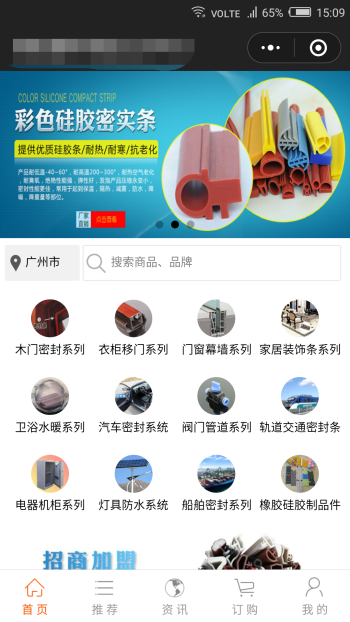 橡膠塑料小程序里有各種各樣的產品,覆蓋范圍比較廣,產品分類為:窗戶、衣柜、衛浴、汽車、船舶以及門等多種產品,能讓用戶迅速找到自己需要的目標產品,同時,用戶亦可通過平臺搜索引擎,根據產品的名稱或是根據怕產品的品牌進行搜索,快速鎖定目標產品。服務方面,實現了定位功能,以便用戶找到同城產品,這樣讓商家和用戶實現快捷有效的交易。