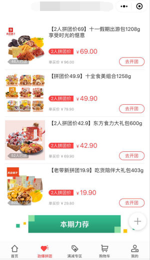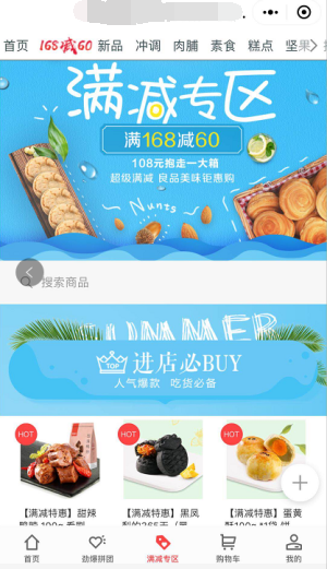 休閑食品小程序的功能齊全、界面簡潔大氣。首頁輪播圖風(fēng)格多變、吸引用戶眼球。一系列促銷方式激起用戶購買欲:勁爆拼團(tuán)、優(yōu)惠劵領(lǐng)取、瘋狂砍價(jià)、限時(shí)搶購、滿減專區(qū)。除了這些,商家也可以通過小程序開通積分兌換、發(fā)放禮品卡等來擴(kuò)充新客戶、留住老客戶,增加客戶粘性。
