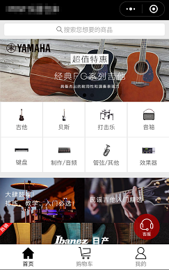 樂器小程序主要是以線下銷售樂器或銷售二手樂器為主,樂器小程序功能齊全,有首頁,購物車,我的三個板塊。首頁里有輪播圖,主要是讓客戶更加了解公司主要經營什么類型的內容和推廣自己的品牌文化,分類商品,讓客戶更加迅速找到自己想要購買的商品;購物車,主要是讓客戶清楚知道物流信息;我的,主要有我的訂單,地址管理,客服熱線,我的收藏等內容。
