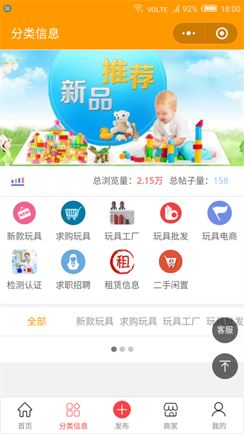 玩具行業的小程序平臺包括新聞資訊、國內品牌、國外品牌、優惠活動、玩具商城、商家加盟、區域招商、商家入駐等服務,企業旨在為客戶提供最新資訊和商家入駐服務,同時也是行業產業鏈高效的宣傳推廣渠道。