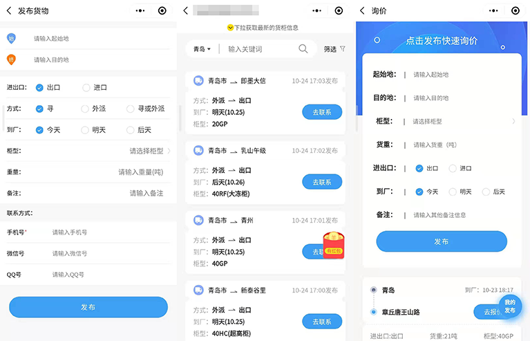 基于小程序搭建的貨運信息平臺,可以滿足不同角色的需求,貨車司機可以隨時發(fā)布車源、獲得貨源信息,而貨主同樣可以快速獲取車源、發(fā)布貨源信息。貨運小程序解決了貨主與貨車司機信息不對稱問題,提升了公路貨運效率。物流貨運小程序可以對每一個配送環(huán)節(jié)進行信息化管理,確保用戶可以享受到優(yōu)質的物流運輸服務。那么在這個高速發(fā)展的時代里,貨運小程序是如何為用戶提供服務的呢?
