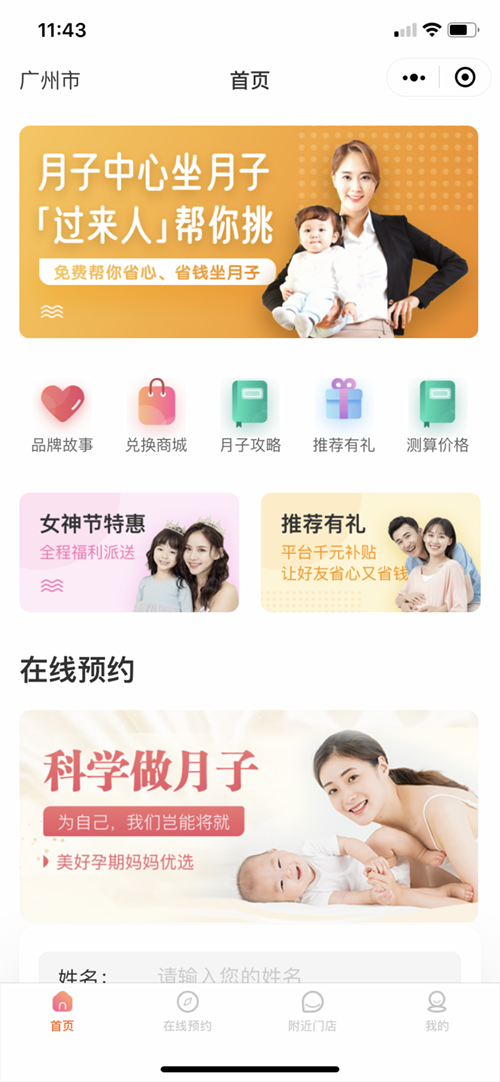 這款小程序上集合了廣州市各個城區優秀的月子中心,點擊月子中心詳情,能了解月子中心的均價、地址、店內環境實拍圖等,還能得到月子中心預約禮。